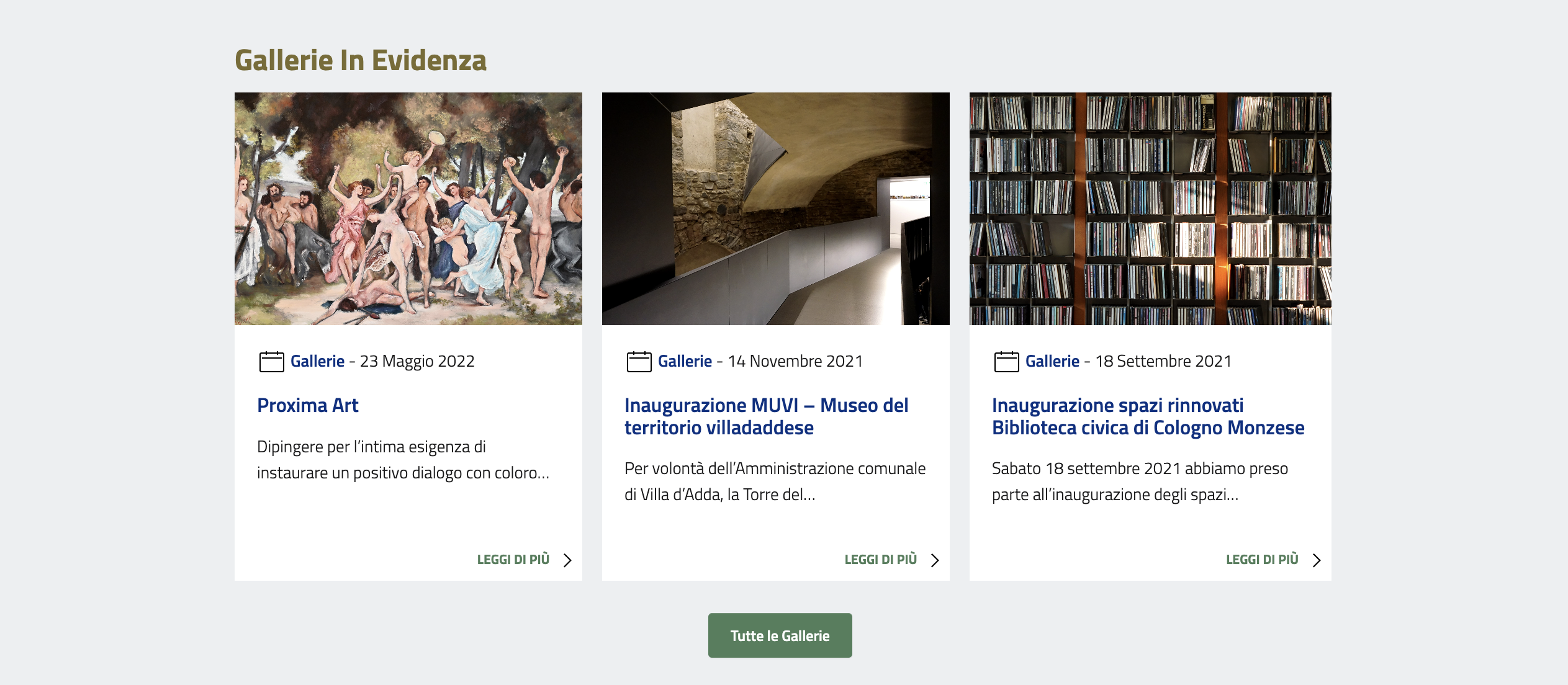 E' comunque sempre possibile accedere a tutto lo storico delle gallerie cliccando sul tasto "Tutte le Gallerie".