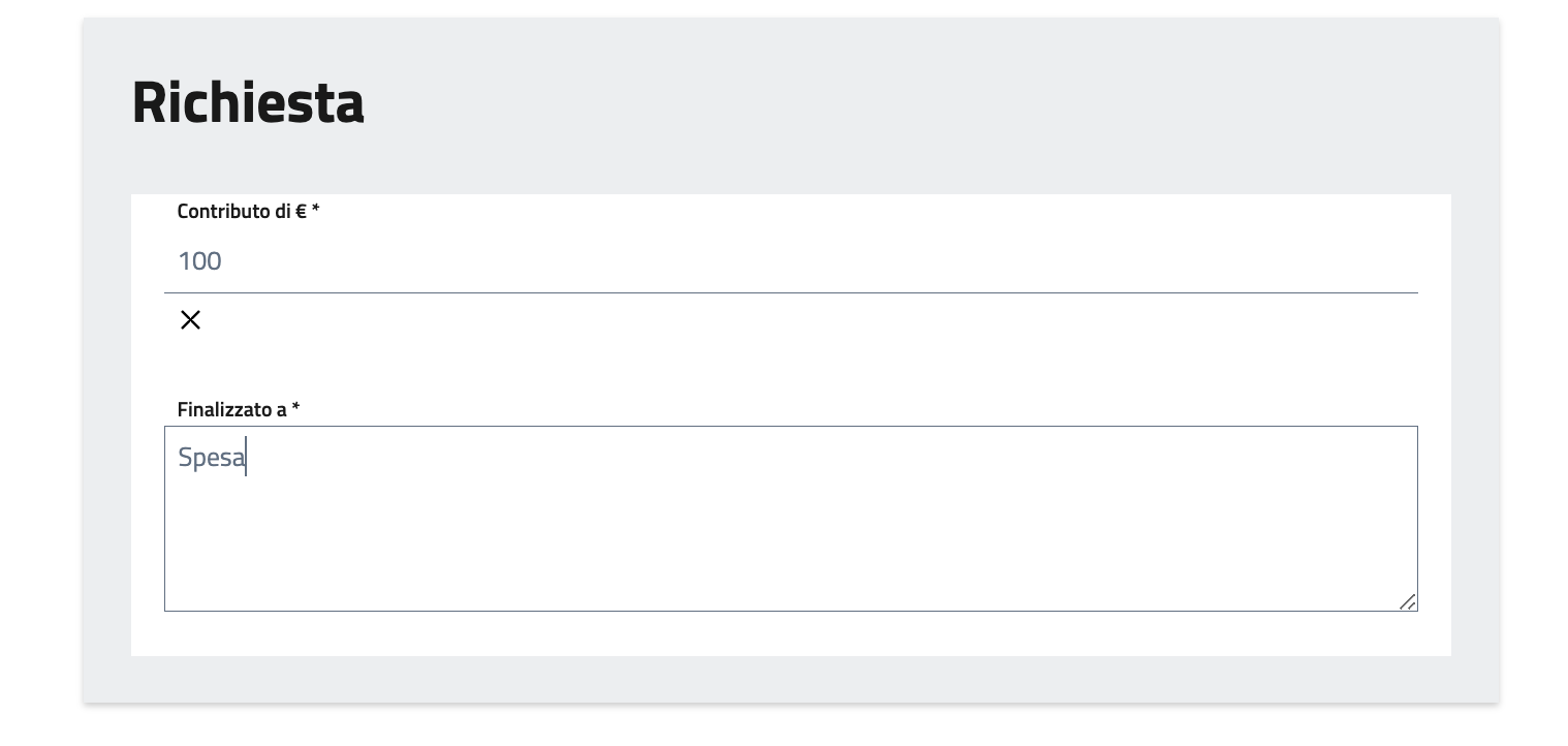 Nel box Richiesta inserire tutti i dati necessari alla presentazione dell'istanza.