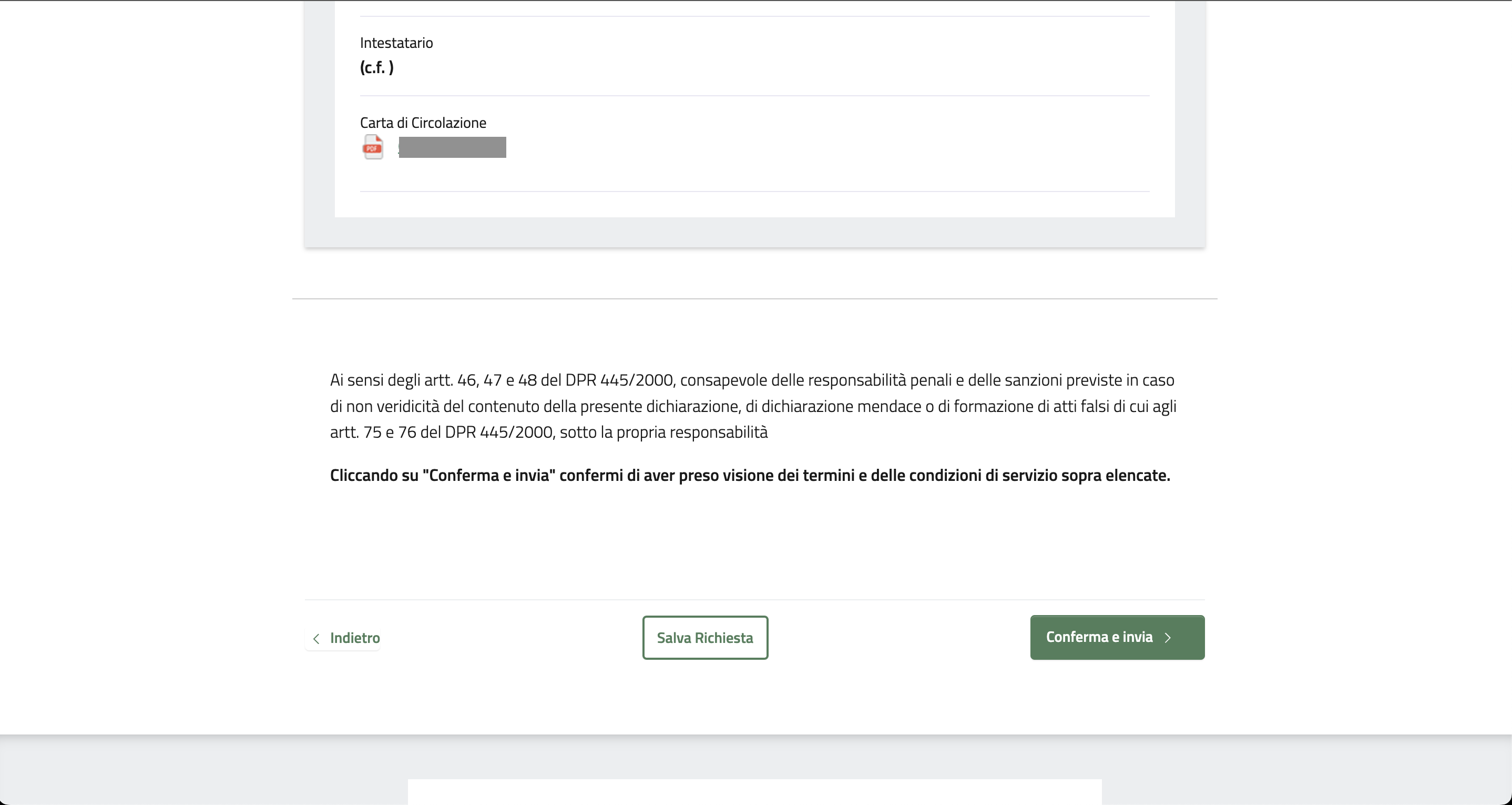 E' sempre possibile salvare la richiesta per proseguire la compilazione in un secondo momento.