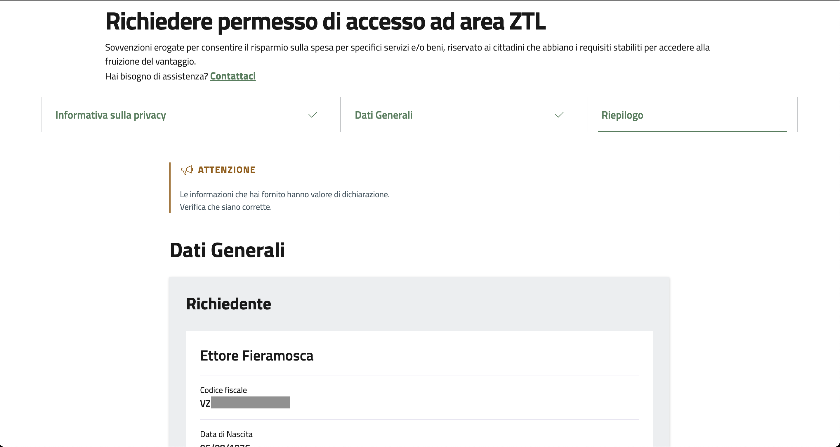 Controllare e/o completare tutti i dati  richiesti.