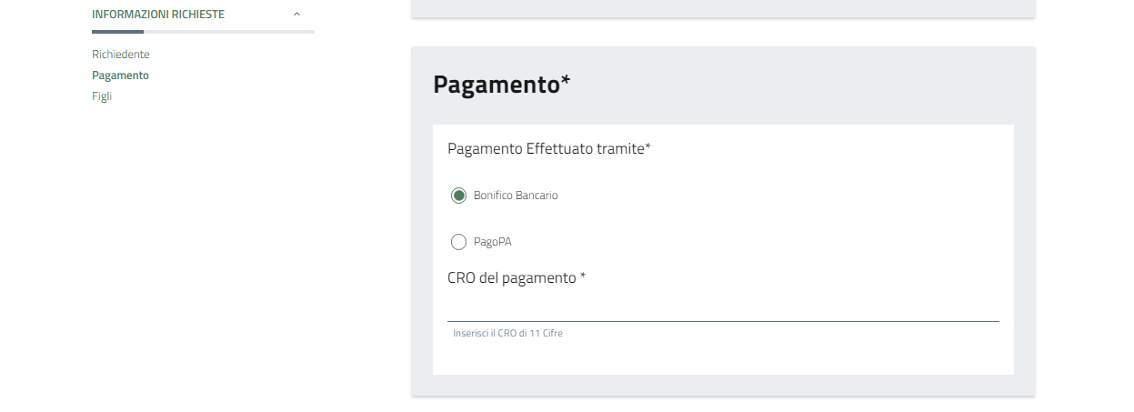 Nel passo successivo è necessario indicare il Cro del bonifico, ovvero il codice riferimento operazione, solitamente presente nella ricevuta del bonifico, a volte contenuto anche nel codice TRN.